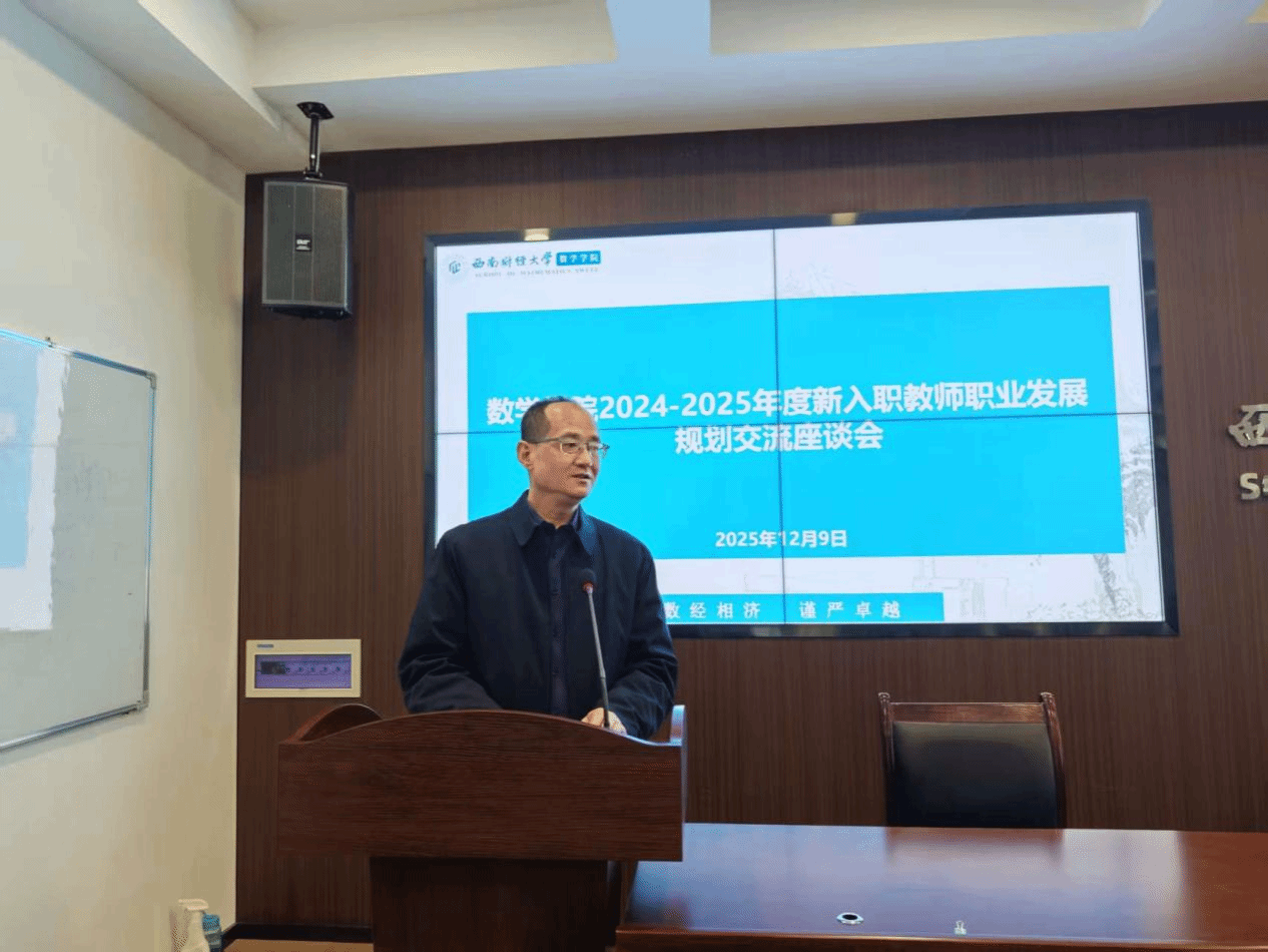 马敬堂院长强调,青年教师是学院发展的生力军,是推动学科建设与人才培养的中坚力量,学院始终将新教师成长放在师资队伍建设的突出位置,以最大力度为大家搭建成长平台、提供发展保障。他希望新教师们牢记“为党育人、为国育才”教育初心使命,潜心教书育人,尽快成长起来,在教学科研岗位上为教育强国建设贡献西财数学力量。