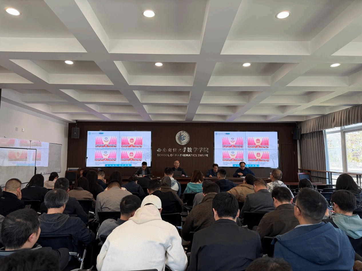 樊俊飞带领全体教职工专题学习全国两会精神,领学习近平总书记在全国两会期间的重要讲话精神,深入学习《政府工作报告》及《中华人民共和国国民经济和社会发展第十五个五年规划纲要》中关于教育的重要部署与核心要求。他指出,全体教职工要深刻把握国家关于高等教育、教育强国建设的最新部署,将两会精神与学院教学科研、人才培养、学科发展等工作紧密结合,切实把学习成果转化为推动学院高质量发展的实际行动,立足数学学科特色,落实立德树人根本任务,为学校和学院“十五五”规划落地见效贡献力量。